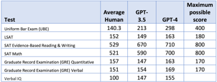 Figure 1: Human Vs ChatGPT on a Range of Tests (Hamilton et al., 2023).